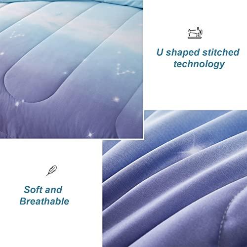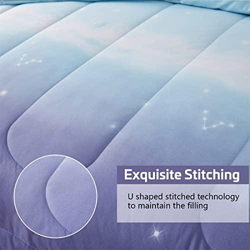 Girls Comforter Set Twin Size 6 Pieces Bed in A Bag Colorful Ombre Blue Purple