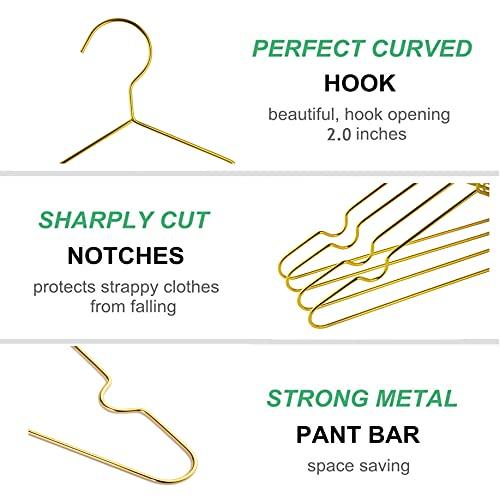 【Elegant Design】Extremely and beautiful gold hangers decorate your precious garments in wardrobe. The bottom of hanger is perfect for hanging jeans and trousers. One hanger can organize your pants and coat. Pack of 20pcs.