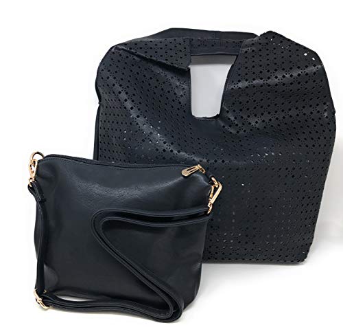 2 Piece Perforated Faux Leather Laser Cut Purse Hobo Bag Handbags Perfect Gifts