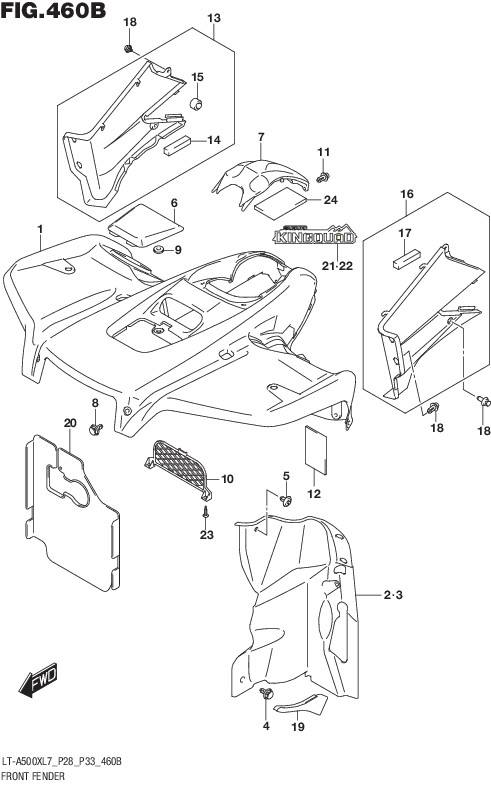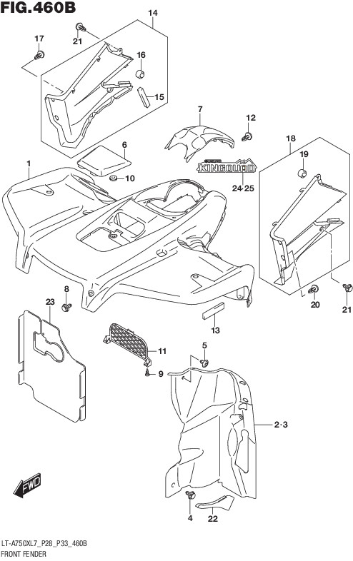 | 2015 | Suzuki | LTA500X,XZ | FRONT FENDER (LT-A500XL5 P28) | MUDFLAP, INNER RH |