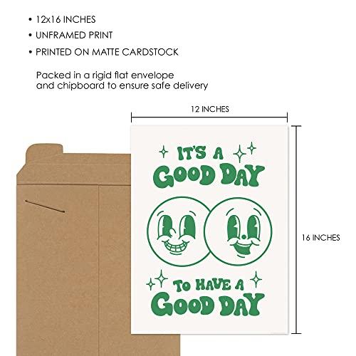 • RETRO POSTER - Spruce up your wall with this retro aesthetic wall art print. Featuring a fun, nostalgic 60's and 70's style retro character and positive quote - It's a good day to have a good day