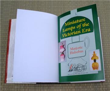 This is a hard bound collector reference book, 'Miniature Lamps of the Victorian Era' copyrighted in 2004 by Marjorie Hulsebus and published by Schiffer Publishing of Atglen, PA. The book has all color photos and 255 numbered pages that feature almost 600 lamp examples with historical information. All pages are white medium weight paper stock. It is in excellent vintage condition with no visible surface and edge wear on the dust jacket. The binding is sound and inside pages are clean. Measurements are 6-1/4" x 9-1/4" x 1" and it weighs about 1 pound 15 ounces.