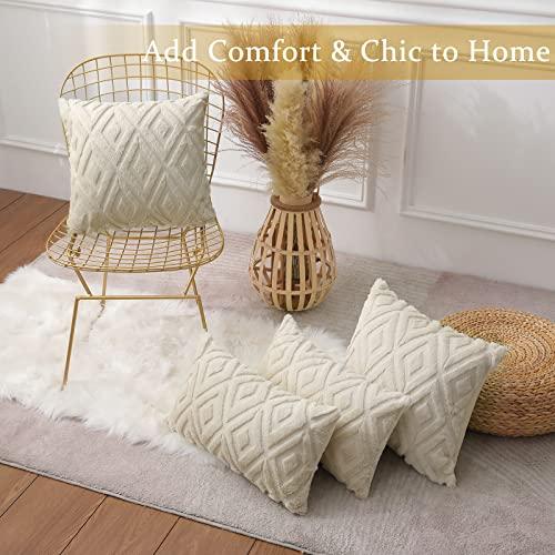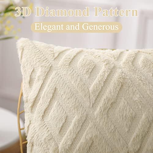 ✔️【FASHIONABLE 3D DIAMOND PATTERN】 - The decorative pillow cases 22x22, inspired by traditional aesthetics, are designed with geometric diamond patterns, forming an elegant and generous style. Meanwhile, the 3D plush embroidery design, makes the fluffy luxury beige throw pillow covers look plump and cute. That’s sure to lend some eye-catching appeal to your space
