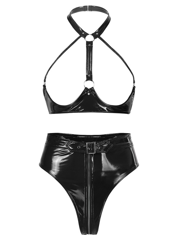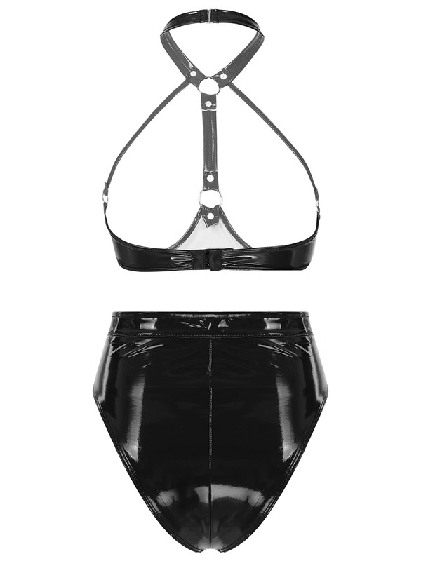 Women’s Lingerie Set Wet Look Bra Top with Briefs.