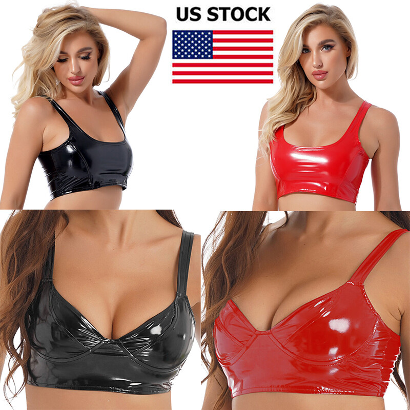 Women’s Lingerie Wet Look Crop Top with Briefs.