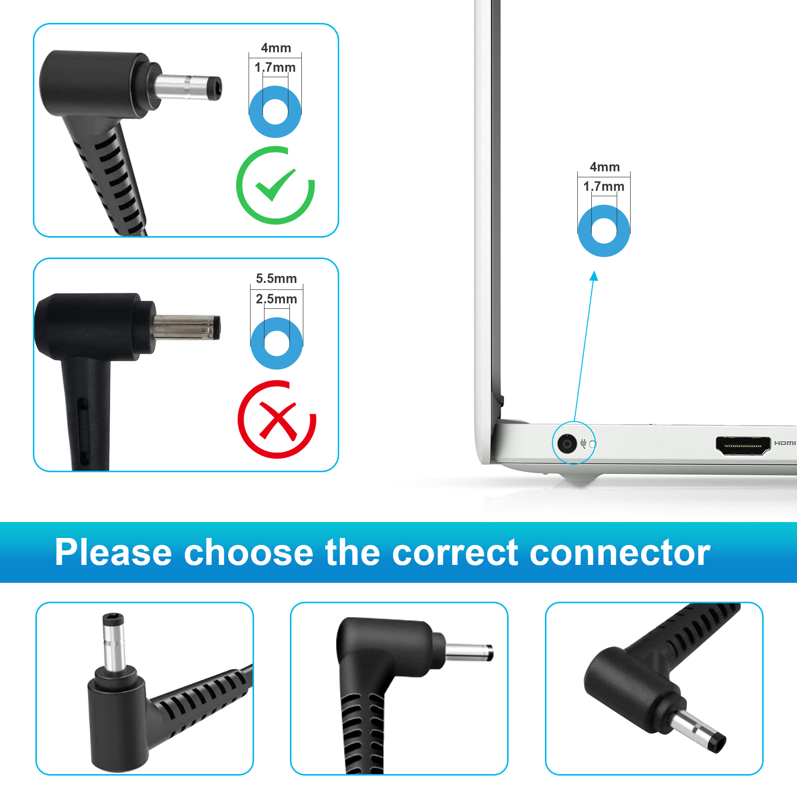 Interface: 4.0*1.7mm (Round Tip! Please check carefully this parameter)