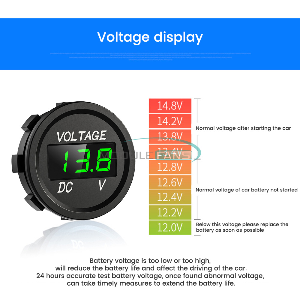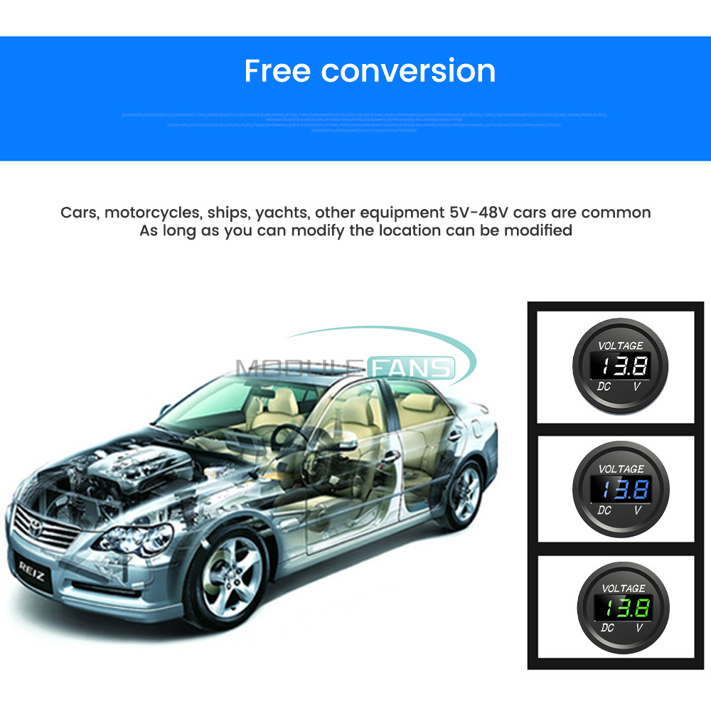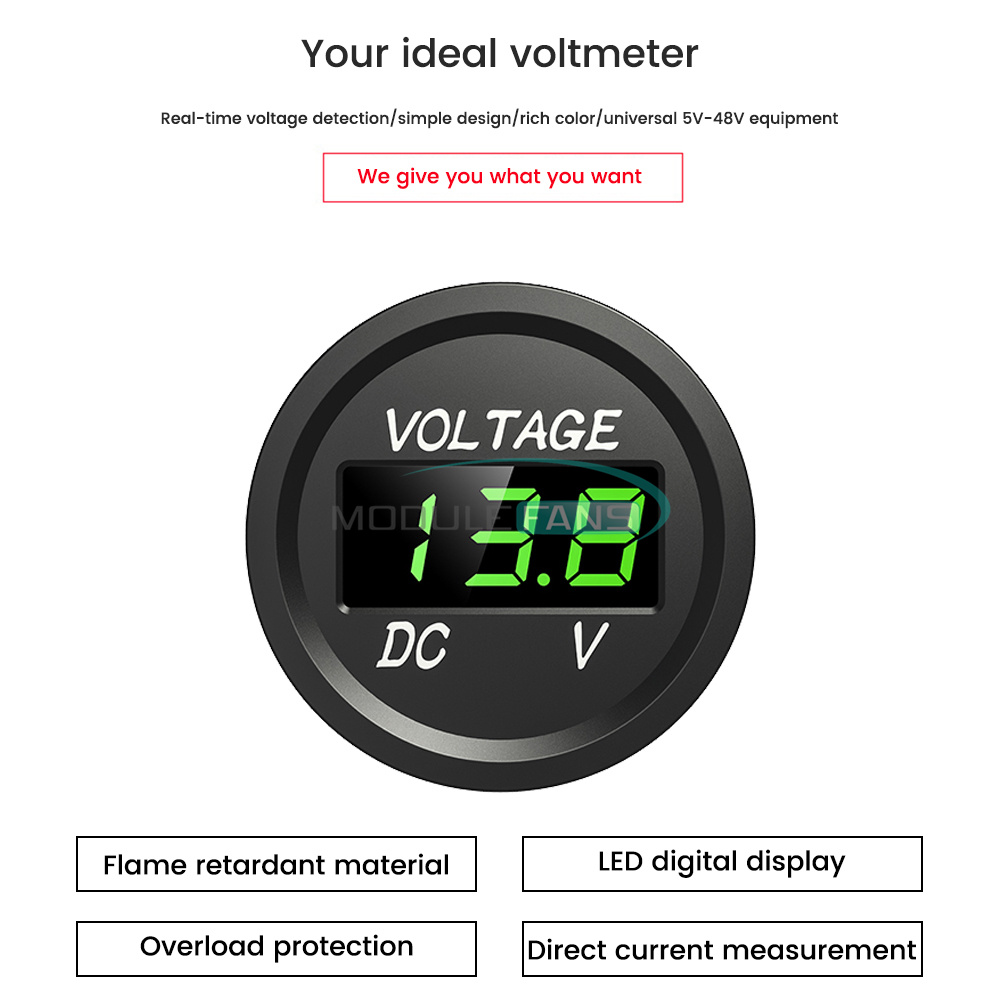 DC 5-48V Mini Waterproof Digital Voltmeter Voltage Tester LED Display For Car