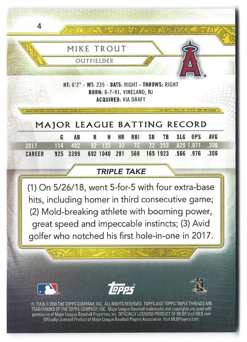 | 2018 Topps Triple Threads Mike Trout #4 READ&SAVE Los Angeles Angels | ||||||||||||||||||
