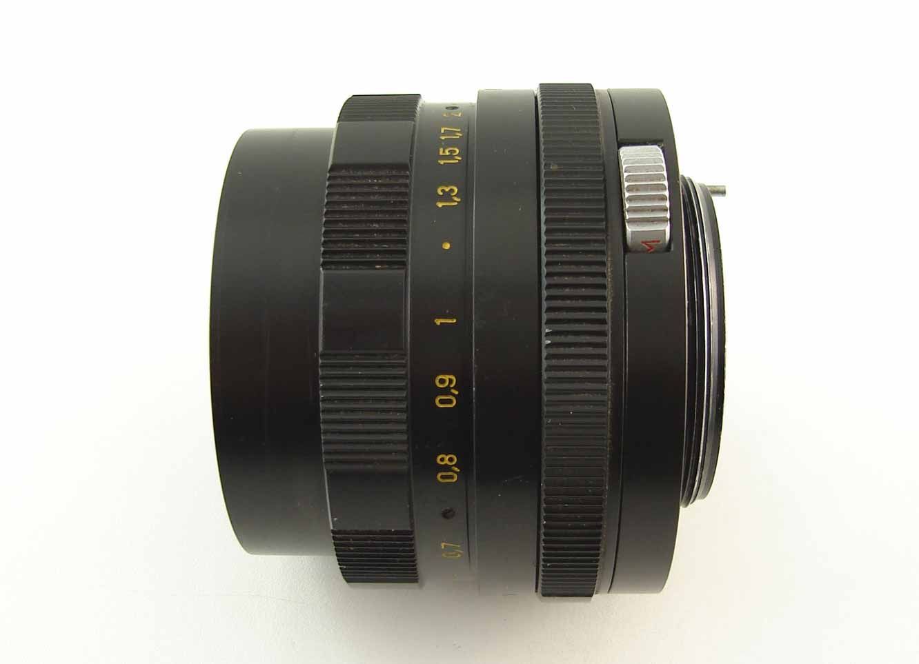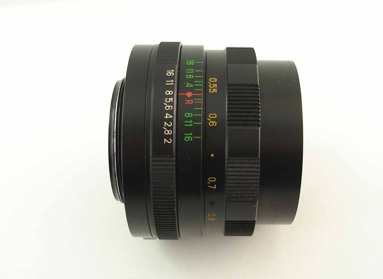 Lens mount: M42 Focal length: 58mm Relative aperture: 1:2 Scale of diaphragms: from 2 to 16 Diaphragm: A/M switch - Automatic/Manual Focusing range: from 0.55m to infinity Filter mount: M52x0.75 |