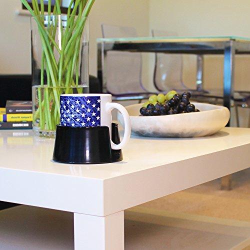 ONE-SIZE-FITS-ALL DRINKS: TableCoaster - The ultimate anti-spill drink holder, is a one-size-fits-all drink coaster to securely hold all your favourite drinks - hot or cold - on any table surface. WHY TABLECOASTER: Regular coasters leave your drink vulnerable to tipping over, but TableCoaster virtually eliminates the possibility of ever spilling a drink again. Use on desks, around your favourite tech, on bedside, coffee and kitchen tables, in boats, cars and caravans, on garden furniture or around pets. HOW IT WORKS: TableCoaster features a unique micro-suction base which creates a strong, temporary bond to flat, smooth surfaces like glass, plastic, metal and wood, leaving no residue. It can be re-positioned over and over again without losing any sticking power! UNIQUE DESIGN: TableCoaster's outer wall deflects accidental knocks and bumps down to the micro-suction base - instead of side to side - ensuring your drinks stay upright. PRODUCT FEATURES: TableCoaster's ergonomic design caters for mugs and tumblers up to 3.5" / 90mm wide (incorporating a clever slot for cup handles), while the adapter supplied creates a snug fit for bottles and cans up to " / 70mm wide. INSTRUCTIONS: Peel the protective film off the micro-suction base. Press the TableCoaster firmly down on any flat, smooth surface to engage the suction. To remove, simply tilt the TableCoaster from one side to release. If the base becomes dusty or dirty, wipe clean with a damp cloth and air-dry to restore the suction. ABOUT: TableCoaster is the evolutionary drink holder in follow-up to the huge success of CouchCoaster - The ultimate drink holder for your sofa. It is designed in Great Britain by Hit Products - a brand new innovation company - bringing you original ideas for your home to solve everyday problems.