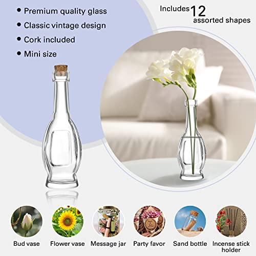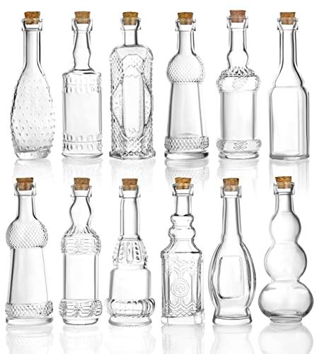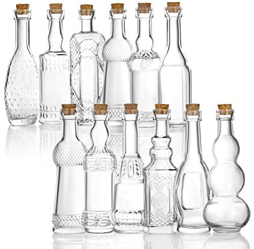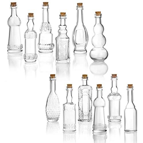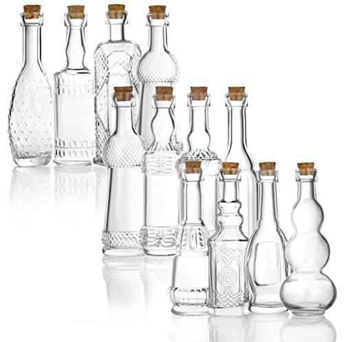 Kitchen Lux Vintage Small Bottles With Corks, Assorted Shapes [12-Pack] Clear