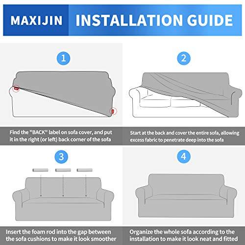 HIGH STRETCH - MAXIJIN magic couch cover is made of high density 85% polyester and 15% spandex fabric. It is highly stretchable so that it can easily fit most couches,such as small or extra large t-cushion couches, box cushion couches, high back couches, leather couches, etc. And it will not deformation because of the high stretchy recovery ability. Upgraded thicker cloth is durable for long lifespan, also feels comfortable soft, breathable, delicate and no wrinkles
