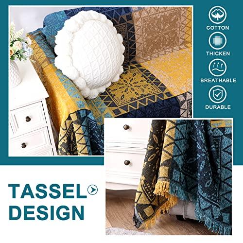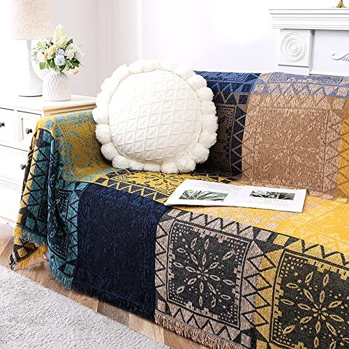 PREMIUM CHENILLE MATERIAL: This Bohemian sofa blanket cover is manufactured from premium skin-friendly chenille fabric with high density stitching, breathable, as soft as best quality material which offer relaxing warmth and coziness. Thickness is suitable for all seasons and durable for years without pilling or fading after washing