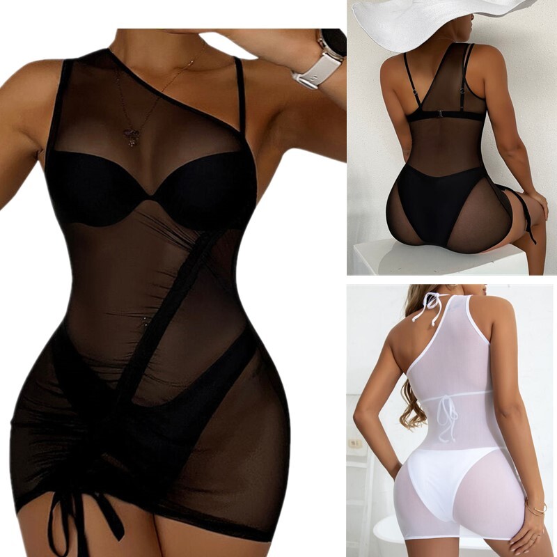 See-through Mesh Pencil Skirt Lingerie Nightwear Sheer Miniskirt for Women.