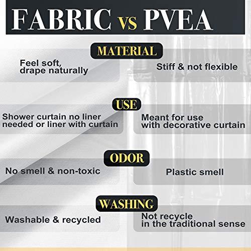 *Made from polyester fabric with 100 GSM (g/m²), this inside shower curtain liner is of hotel quality, unlike PVC-laden vinyl and plastic alternatives.