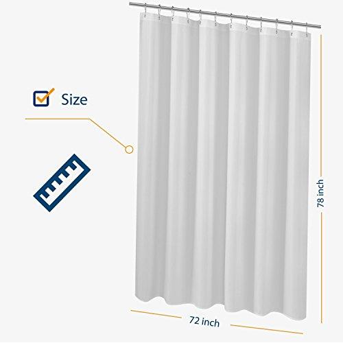 *Made from no-toxic polyester fabric with 100 GSM (g/m²), this shower curtain liner is eco-friendly safe and healthy to you and your family, unlike PVC-laden vinyl and plastic alternatives.