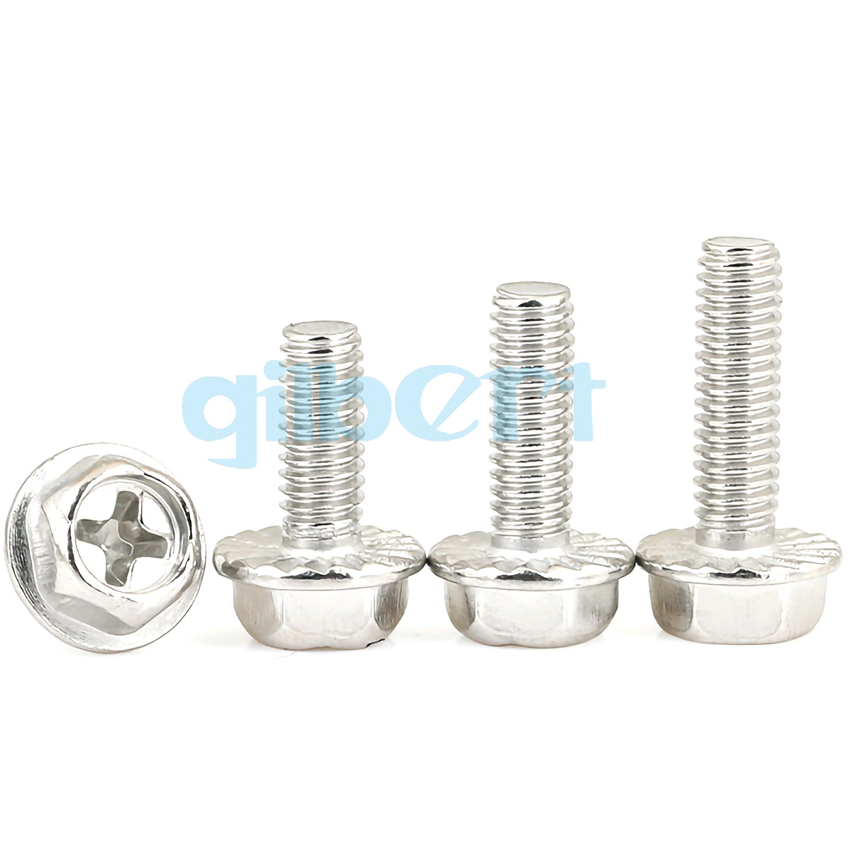 M4 M5 M6 M8 304 stainless steel Cross Recessed Hexagon Head Flange Screw with Gasket Tooth Hex Flange Bolt