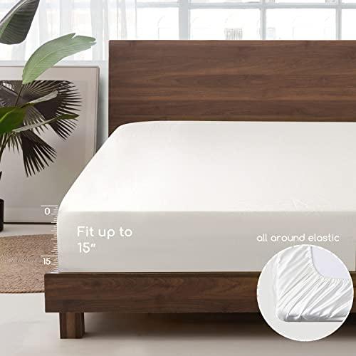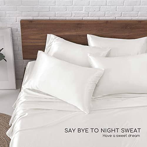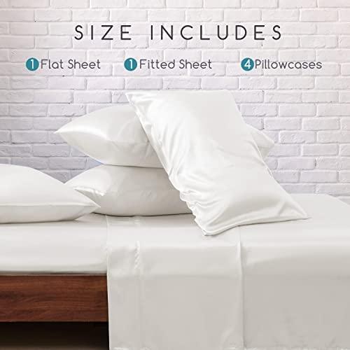 MR&HM Satin Bed Sheets, King Size Sheets Set, 6 Pcs Silky Bedding Set with 15
