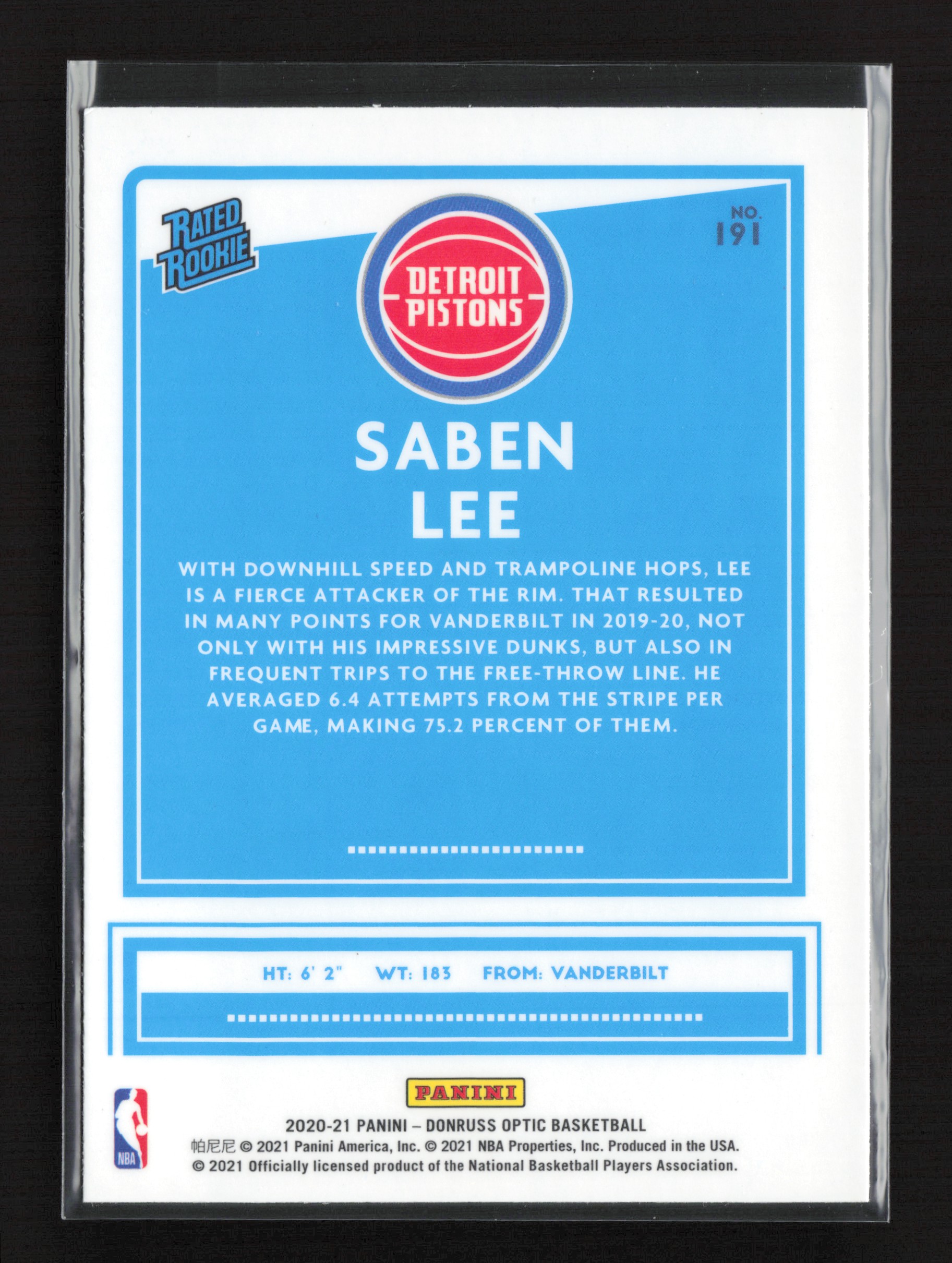 2020-21 Panini Donruss Optic Rated Rookie Saben Lee RC #191 Detroit Pistons
