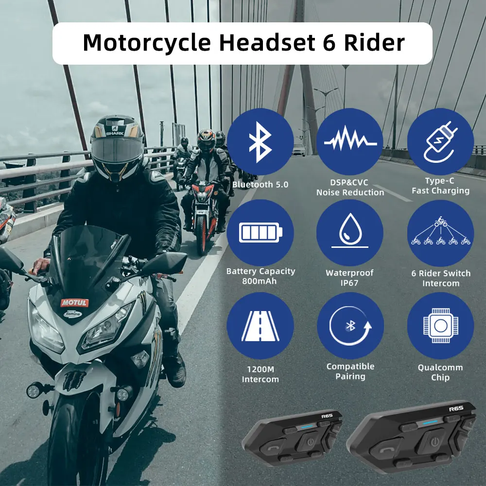 【6 People Pairing, 2 People Talking Simultaneously】: WAYXIN R6S motorcycle headset supports pairing of 2 to 6 people, the leader can talk to any of them, the longest call distance is 1200m