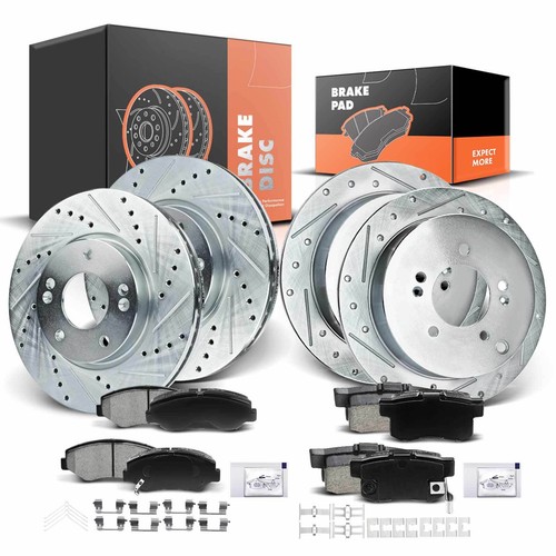 Front & Rear Drilled Brake Rotors and Ceramic Brake Pads for Honda Accord 03-07