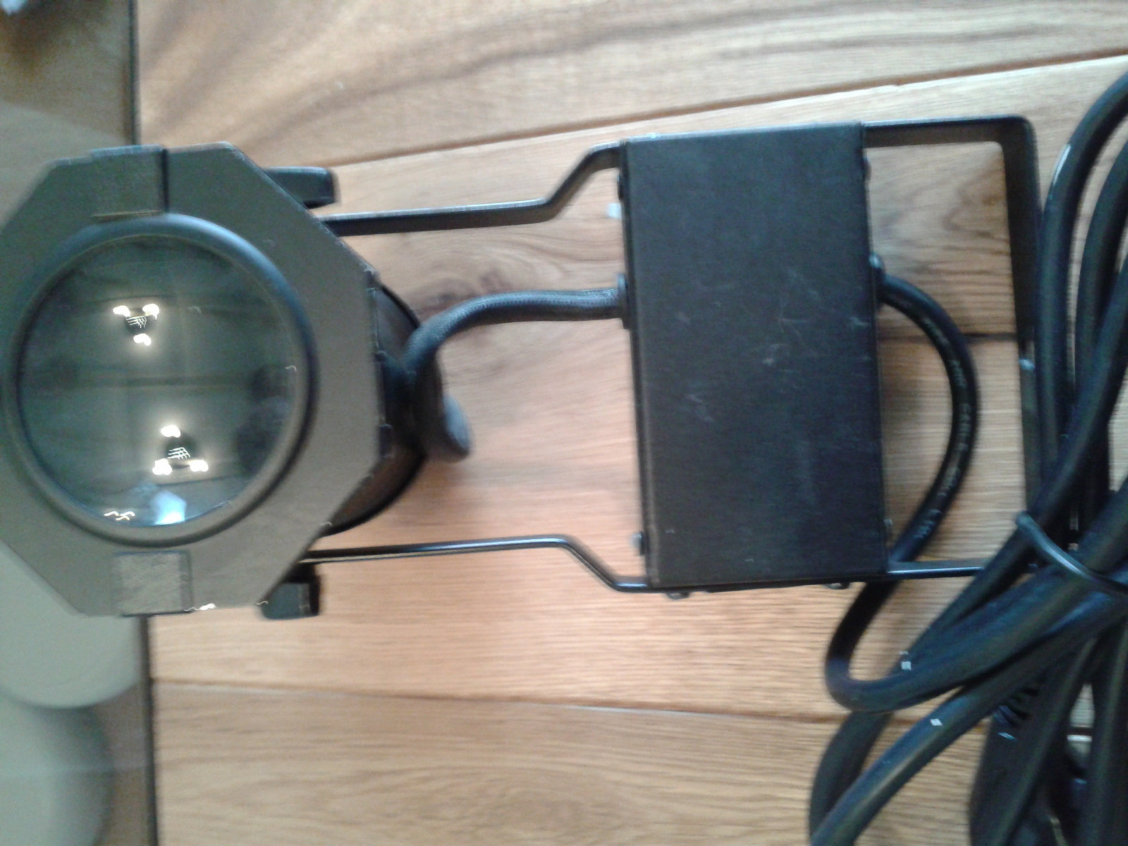 Dieser Scheinwerfer wird mit einer herausnehmbaren Linse geliefert, die eine Art Blumenmuster (Spot in der Mitte, außen herum Blütenblätter) darstellt. Man kann diese Linse entfernen, dann strahlt das eingebaute Leuchtmittel mit ca. 45 Grad Winkel. Es lassen sich auch Farbscheiben oder Folien davorsetzen (nicht im Lieferumfang) Leuchtmittel können beliebig verwandt werden. Alle Farben, LED, Halogen und viele andere.