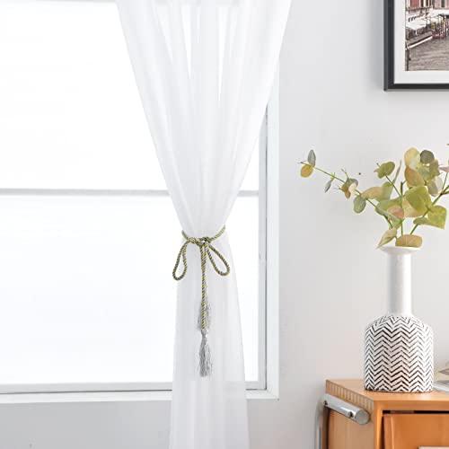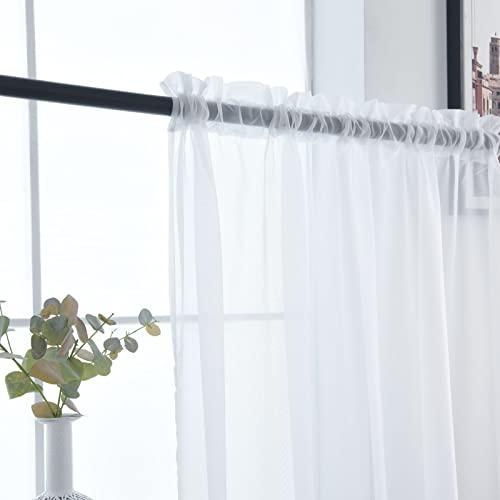 SpaceDresser Basic Rod Pocket Sheer Voile Window Curtain Panels White 1 Pair 2