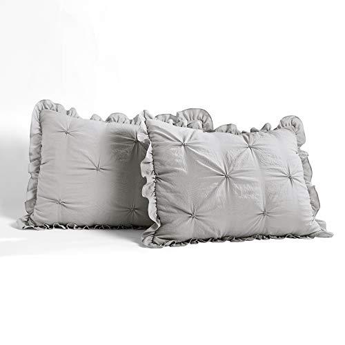 This beautiful bedspread set is soft and luxurious feeling with hand tucking detail on crinkle Microfiber and elegant ruffled edges. It fits in nicely with your farmhouse, minimalist or traditional bedroom. Includes the bedspread and 2 pillow sham.