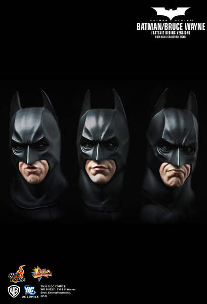 Two interchangeable heads with one Batman head and one newly developed head sculpt of Christian Bale as Bruce Wayne
