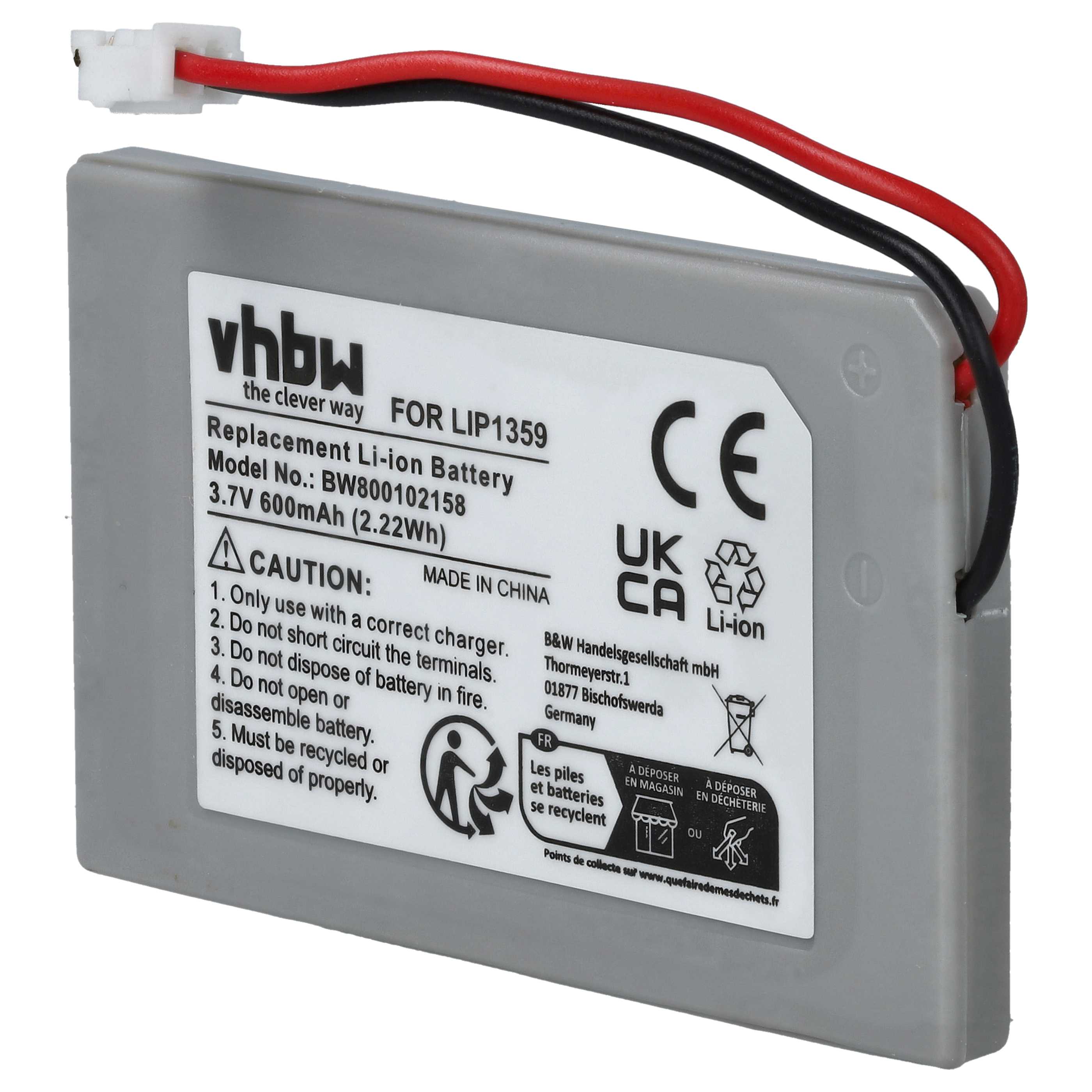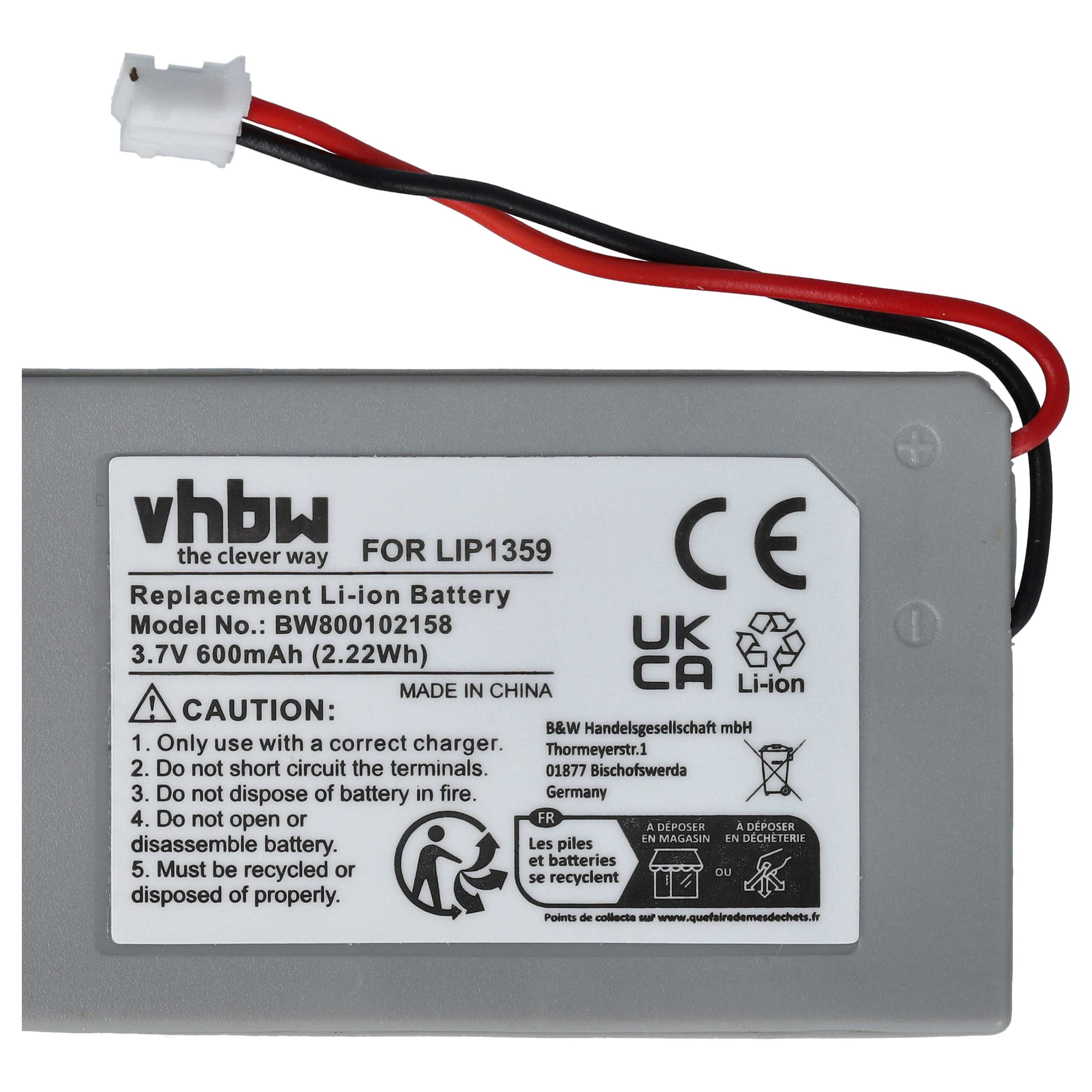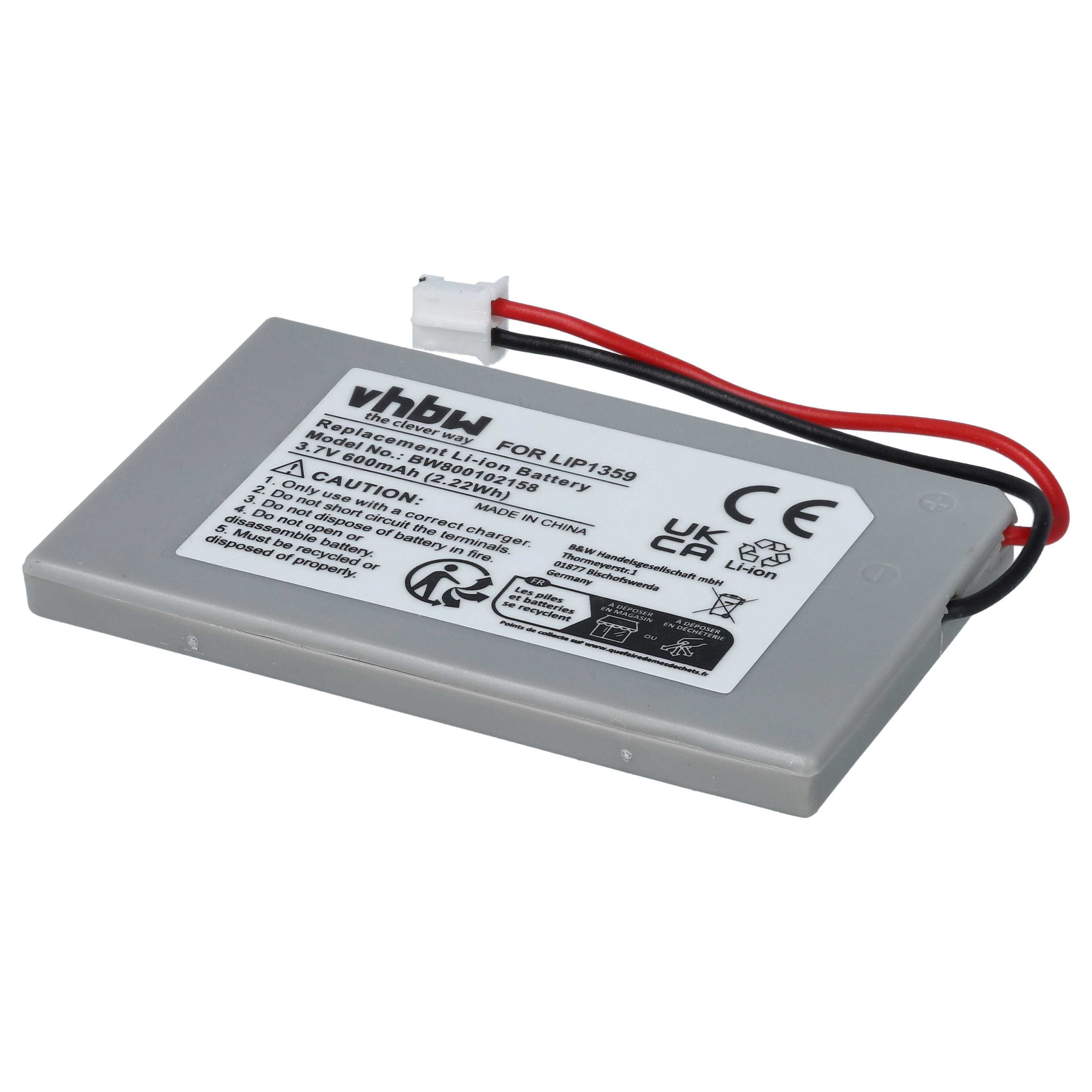 vhbw Batterie rechargeable puissante de remplacement comme Sony Lip1359, Lip1859, Lip1472 pour manette de jeu contrôleur (Li-ion; 600mAh; 3,7V)