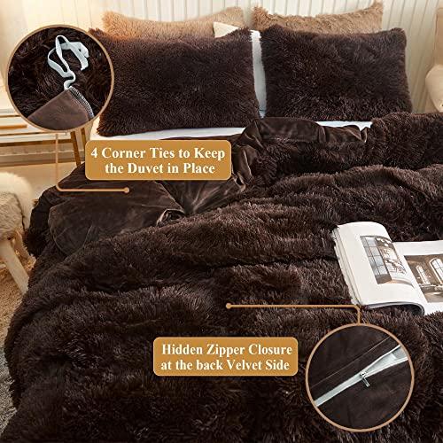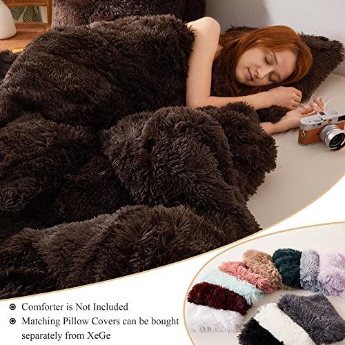 XeGe Plush Shaggy Duvet Cover, Luxury Ultra Soft Crystal Velvet Fuzzy Bedding