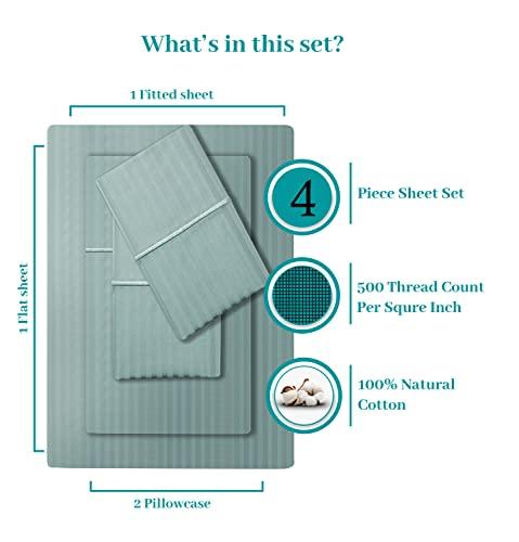 HOTEL COLLECTION LUXURY. Made from the finest 100% Combed Cotton yarns for softness and luxury. Enjoy the luxury and comfort of silky soft sheets with an amazing look with the perfect combination of 100% cotton sheets Fully elasticized fitted sheet which provide 18-inch-deep pockets to accommodate both deep and pillow-top mattresses. Our 500 thread count cotton sheets are exactly what the title states they are. A true 500 thread count sheet set crafted from the softest 100% cotton fine Indian yarns. No misleading Title or Description. QUALITY - Woven using an exclusive sateen weave the sheets come with a damask striped pattern to give a stylish look to your bedroom decor and is available in beautiful colors.