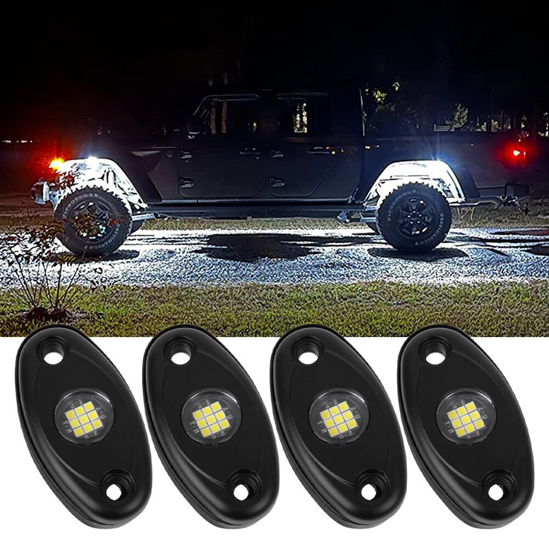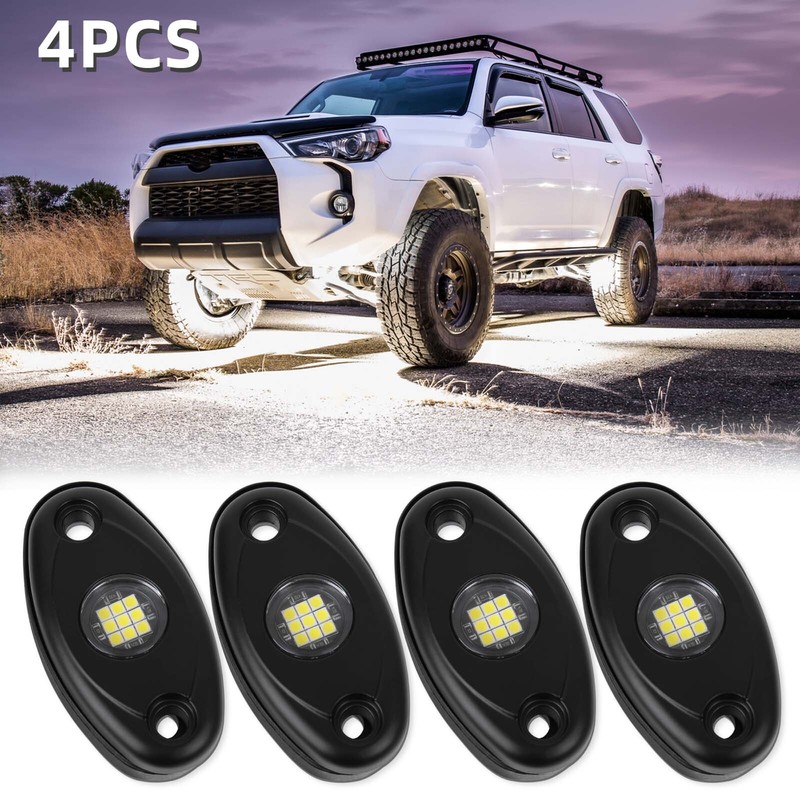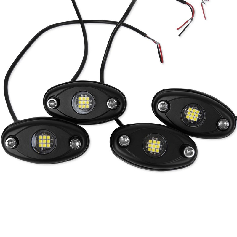 LED Rock Lights: White,Voltage:12V-24V;Power:9W;Flux:350LM;IP 68 waterproof;rock lights: 2.75”; More Brighter, Longer life span, It up to 50000 hours life span! This Auto Rock Lights will boost your night time driving efficiency as well as turn heads, You can see road clearly in whatever conditions, and could work at all conditions.
