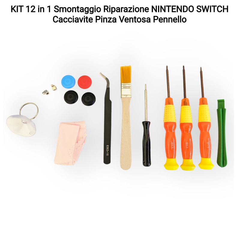 KIT 12 in 1 Smontaggio Riparazione NINTENDO SWITCH Cacciavite Pinza Ventosa