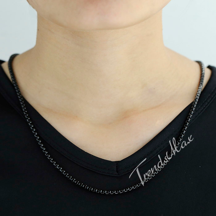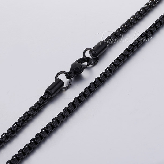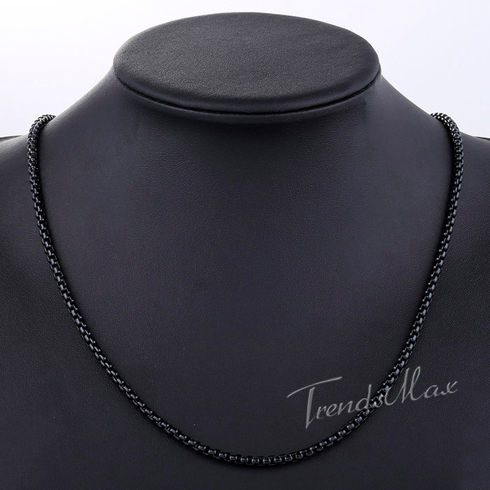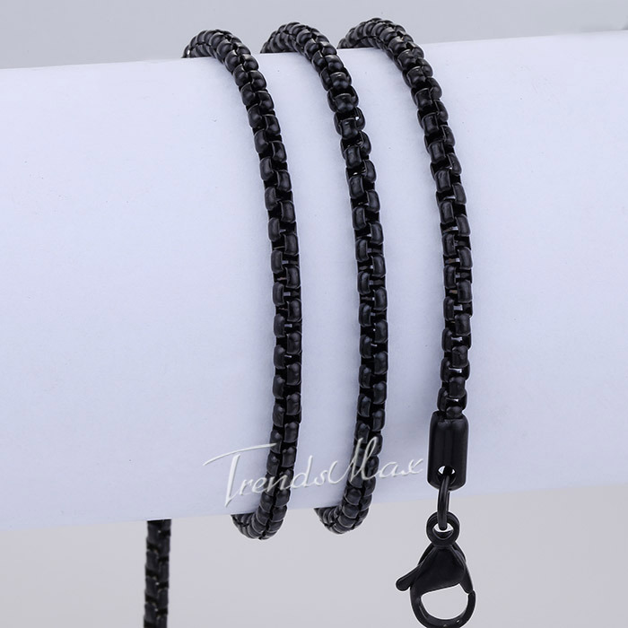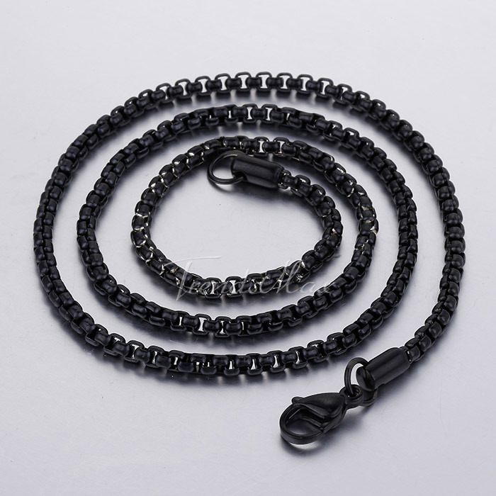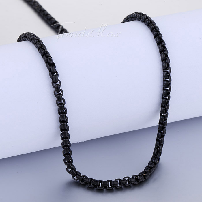 3mm 24 Inch Men's Chain Black Stainless Steel Round Box Link Necklace Jewelry