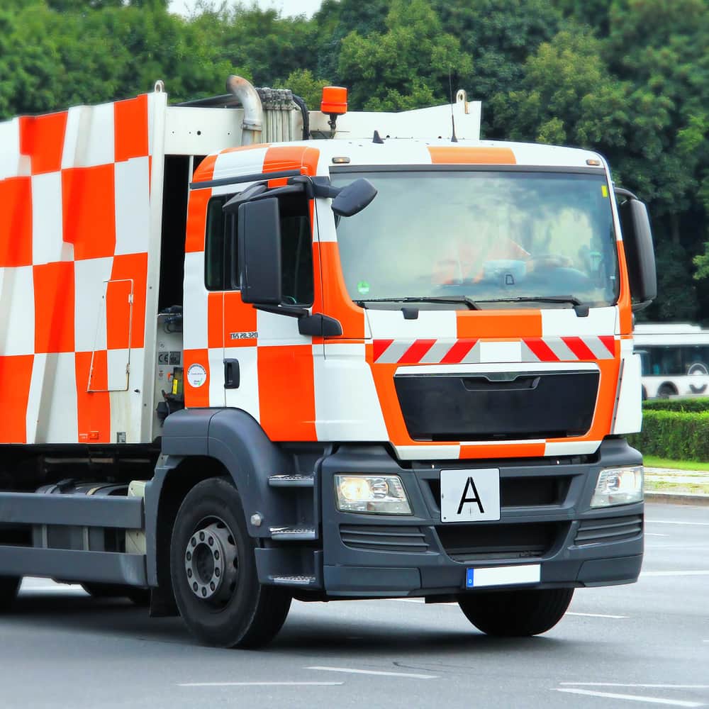 Bitte beachten Sie: An jedem Fahrzeug müssen 2 Abfallwarntafeln befestigt werden, eine Tafel an der Front und eine am Heck!