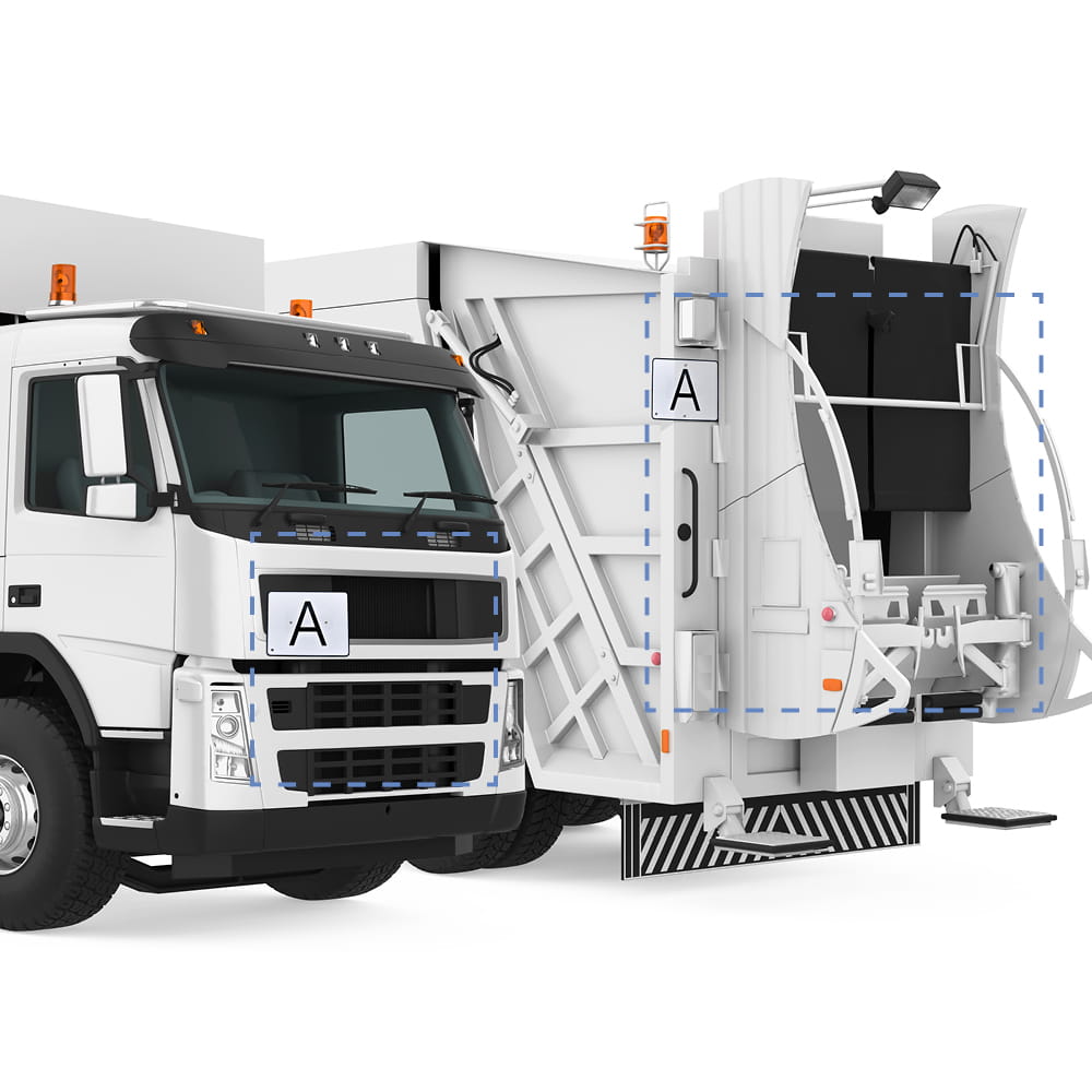 Bitte beachten Sie: An jedem Fahrzeug müssen 2 Abfallwarntafeln befestigt werden, eine Tafel an der Front und eine am Heck!