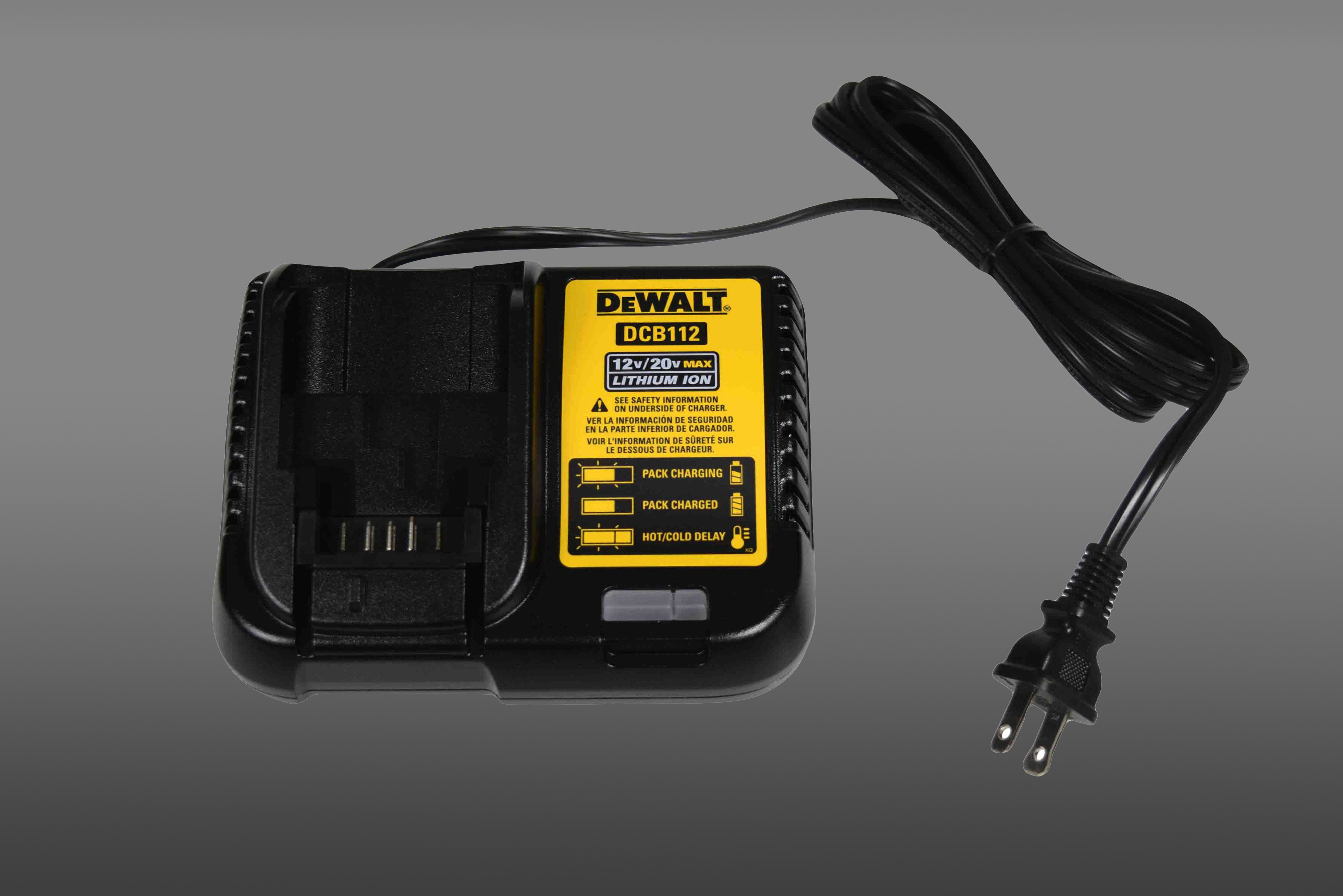 DeWalt DCB112 12V/20V Battery Charger charges DeWalt 12V-20V slide-style batteries in an hour or less. Designed with LED state of battery indicator.- Charges XR Li-Ion DEWALT 10.8V 14.4V 18V Slide Pack batteries