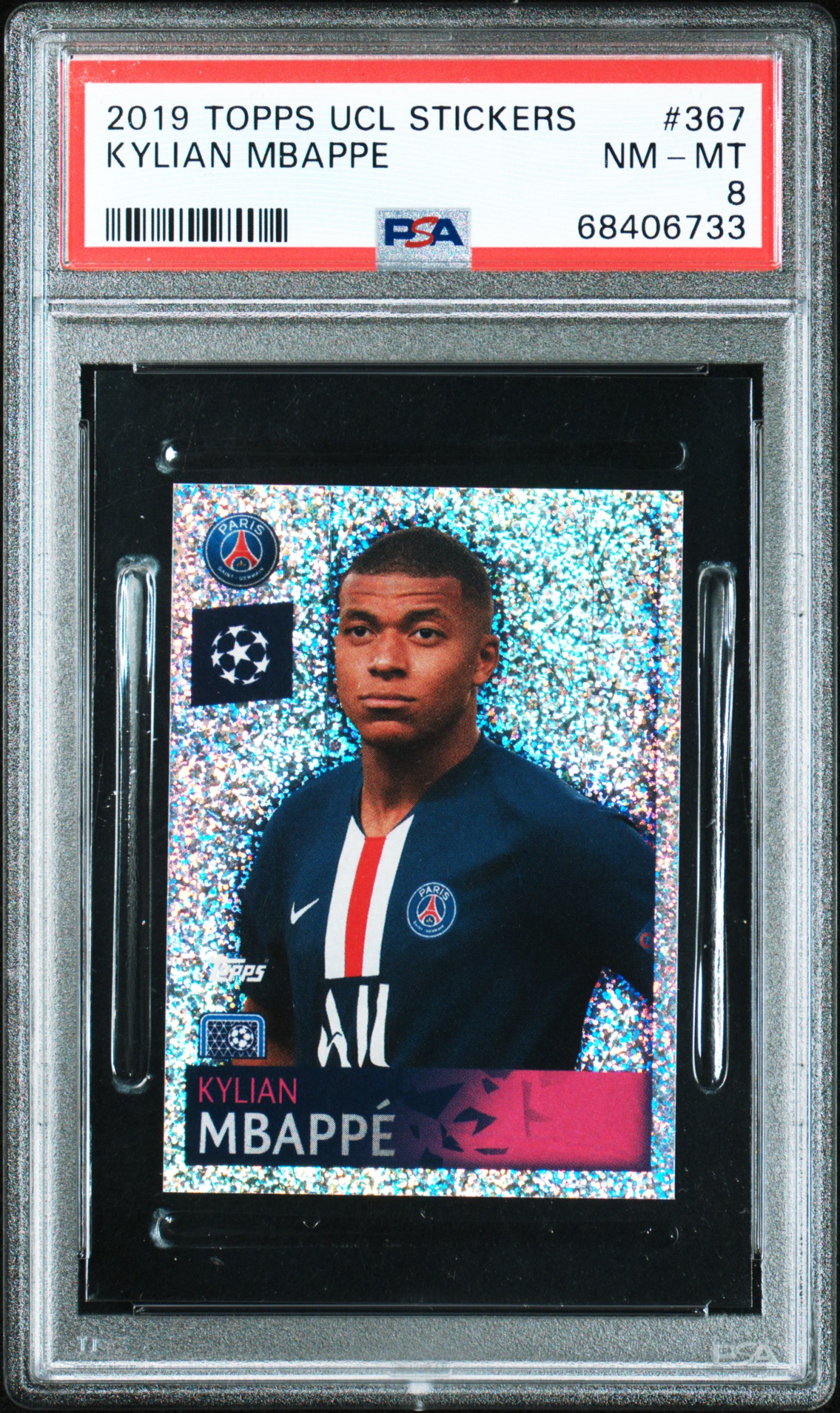 🔥🔥💎💎 GORGEOUS and SUPER RARE 2019 Kylian Mbappé TOPPS WHITE SPARKLE REFRACTOR UCL STICKERS card #367.