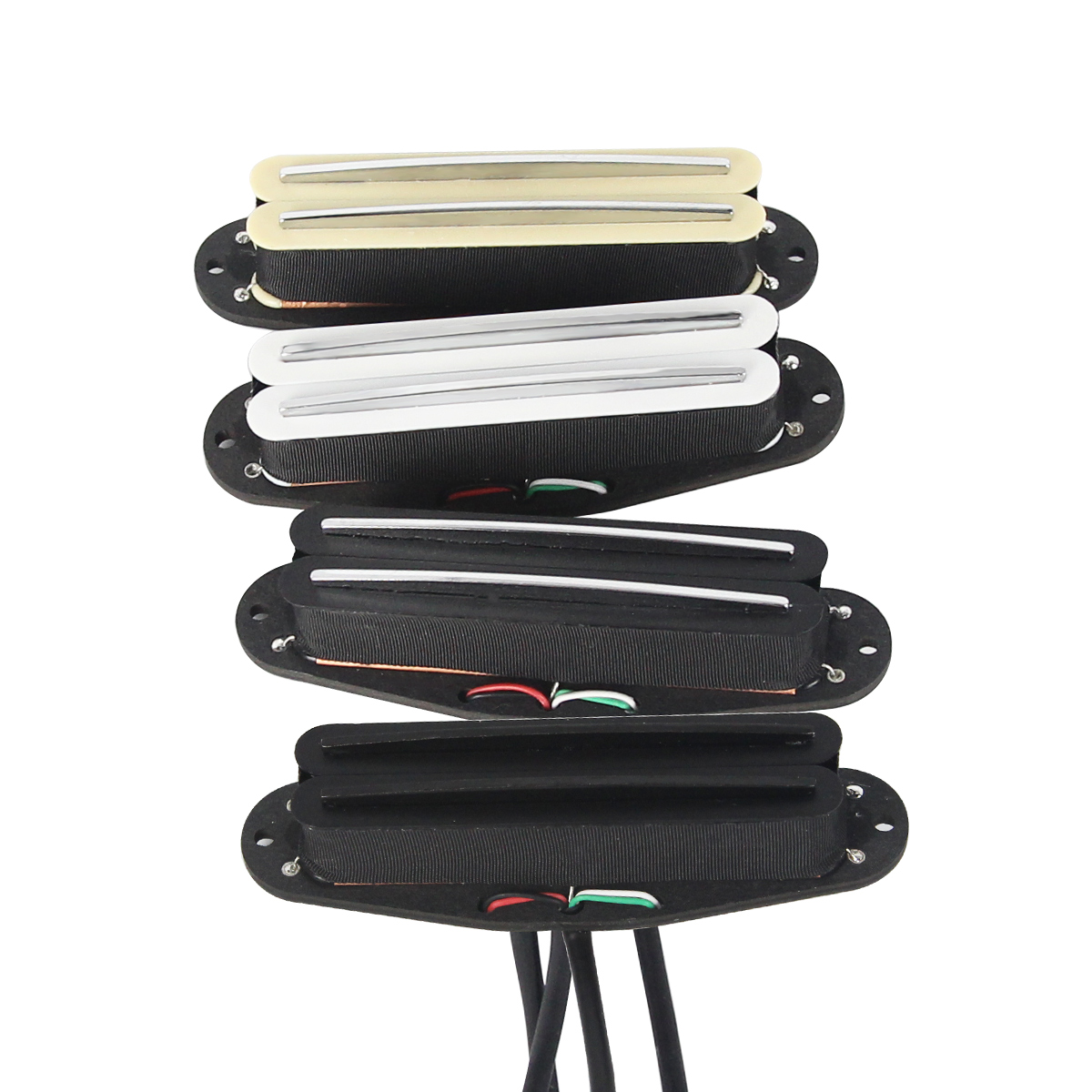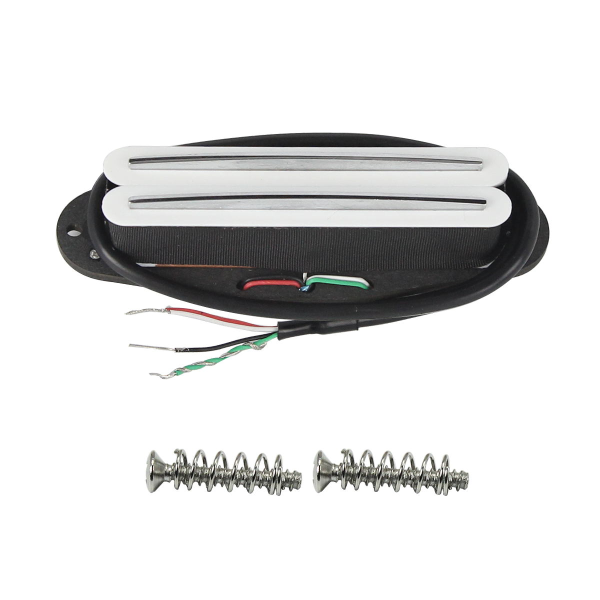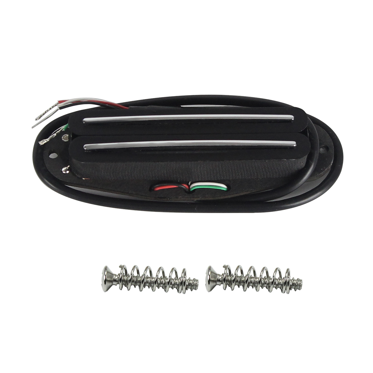 Features: 100% brand new and quality! Dual Dual Rail s Pickup Used for ST/SQ Style or Similar Electric Guitar. A humbucker pickup that can fit into a standard single coil slot. Magnet:Alnico 5. The hot rails pickup can used for all Neck, Middle,Bridge Position, the low resistance more suit for neck position. White,Black .Yellow, Full Black Colors for option. Resistance: 6-7K; 9-10K ;13-14K for option. Fiber plate flatwork bobbin. Four conductor wires, the black & bare wire is ground, green wire is hot, red and white is for splitting coil. Fully wax potted and sealed to eliminate any unwanted feedback and noise.. The pickup come with screws and springs, easy to install. We recommended use with 500K potentiometer together to get better tone. Package included: 1 x Guitar Pickup 2 x Screws 2 x Springs