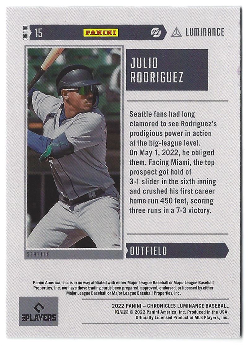 | 2022 Panini Chronicles Luminance Julio Rodriguez RC #15 READ&SAVE Seattle | ||||||||||||||||||||