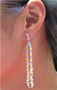 The Following Item we are offering are these Extremely Rare Beautiful 18KT Gold Fine Large Fancy Yellow and White Diamond Dangle Earrings. Each Earring features Rare Gorgeous Glittering Fancy Large Yellow Diamonds adorned with Sparkling Mixed White Diamonds and Rose Cut Diamond in the form of an Open Fan!! T.C.W. Approx 10.50CTS!!! The Diamonds are of Exquisite and Fine Quality!! These Gorgeous Earrings are a Rare Sample Piece from a Private Top Manufacturer that sold to Select Five Star Hotels and Fine Jewelry Stores around the country and Comes New With Tags $53,200!!! A Pair of Rare Breathtaking Masterpieces!!!