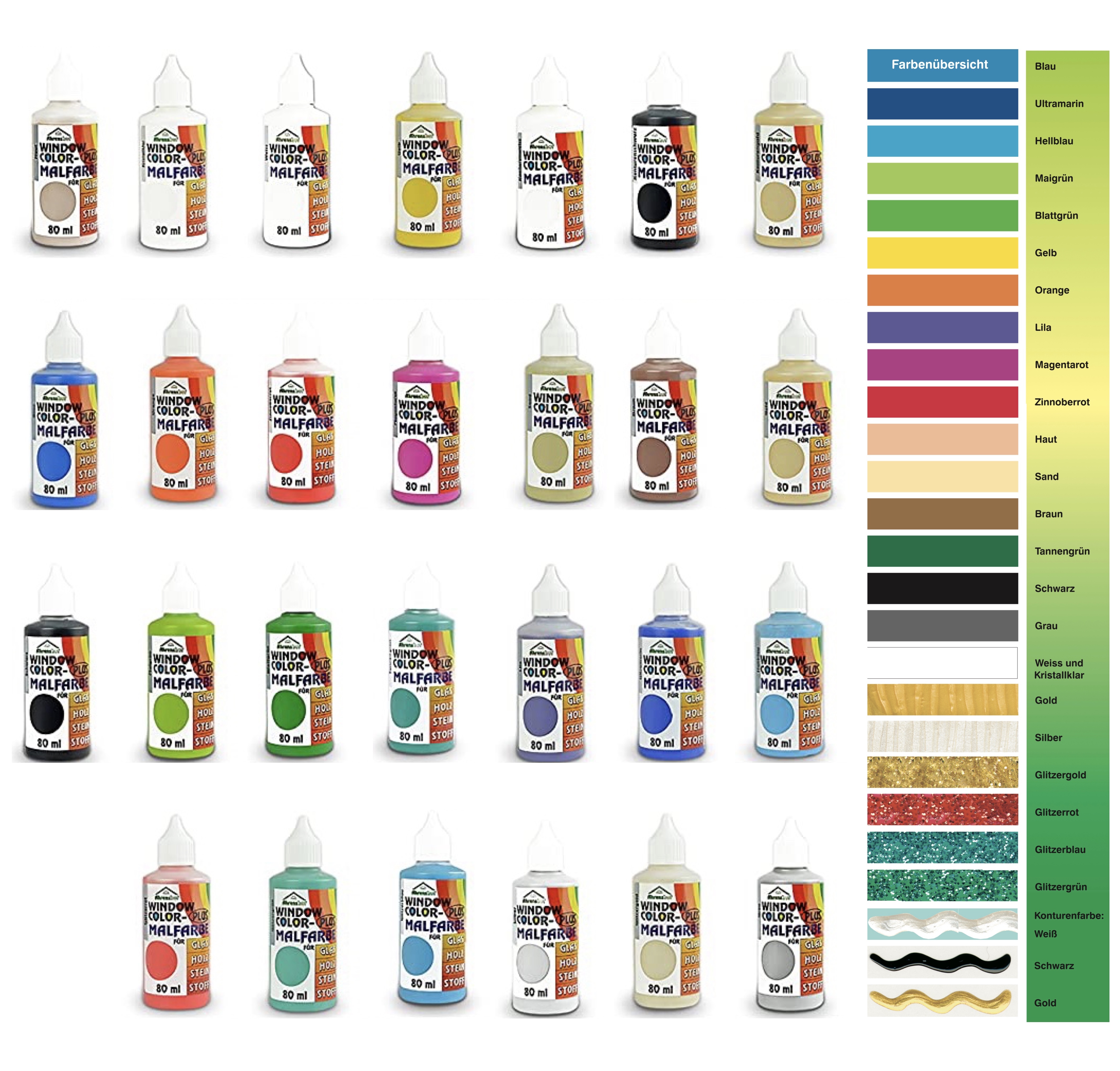 Ahrenshof Original Window Color-Plus Fenstermalfarben, Konturenfarben und Sonderfarben, 80ml