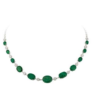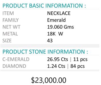 The Following Items we are offering is a Rare 18KT White Gold Large Emerald and Diamond Necklace. Necklace is comprised of Finely Set Gorgeous Glittering Emeralds and Diamonds!!! Measures Approx 17". The Emeralds and Diamonds are of Exquisite and Fine Quality. This Gorgeous Necklace is a Sample Piece and Comes with Original tags from the Manufacturer that are found in Important Five Star Hotel Jewelry Stores and shops on Madison Avenue and Rodeo Drive. NWT Original Retail Price: $23,000.00.
