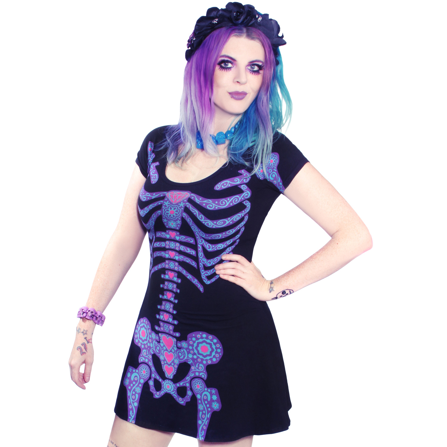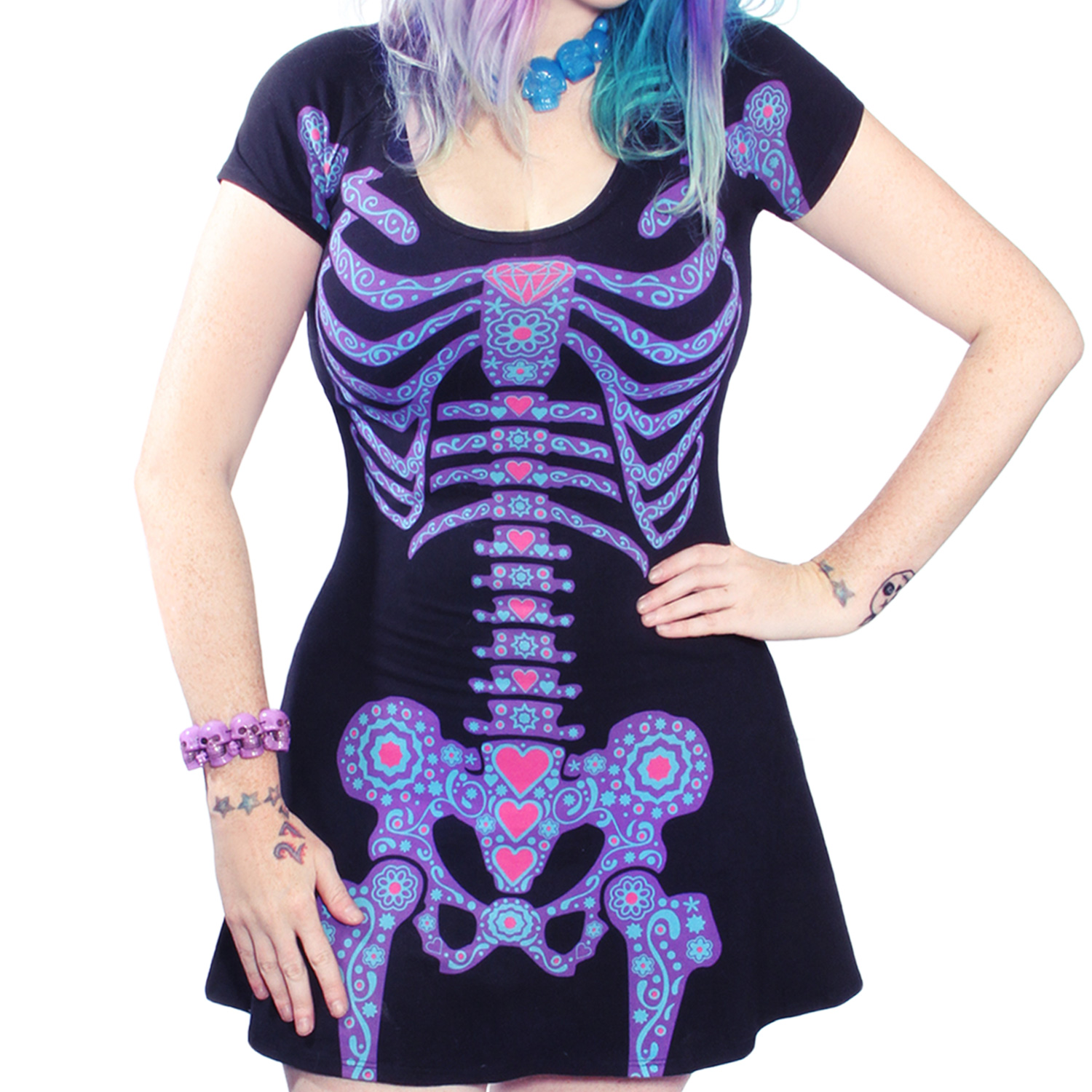 Kreepsville 666 Day of the Dead Skeleton Flare Dress Made in the USA