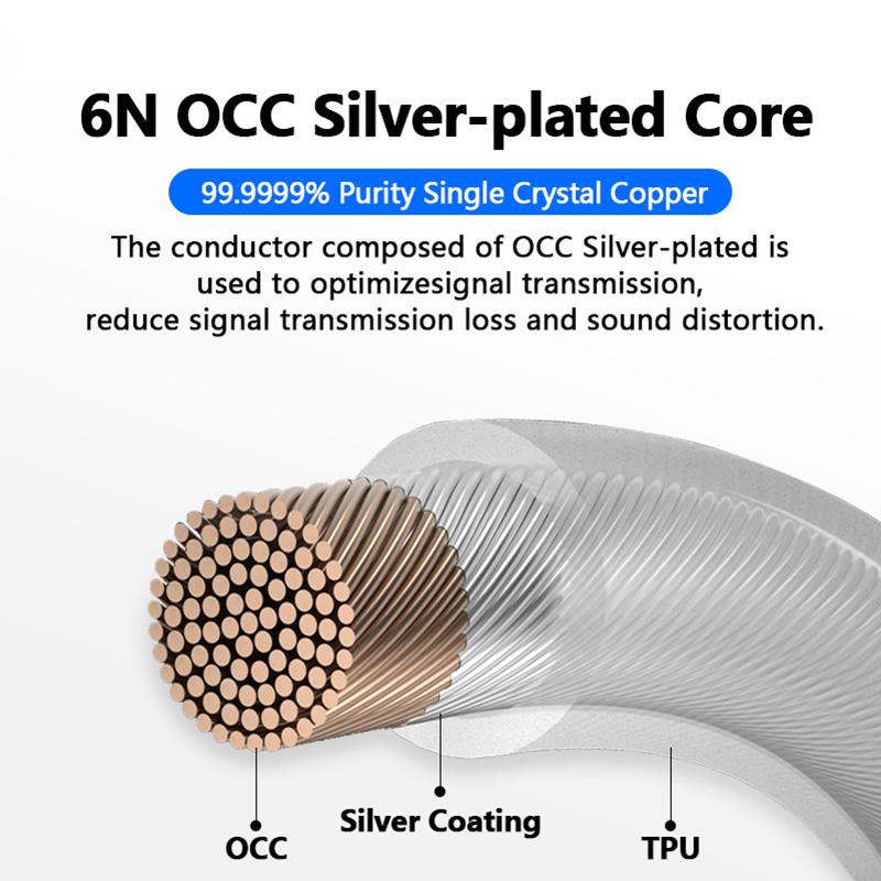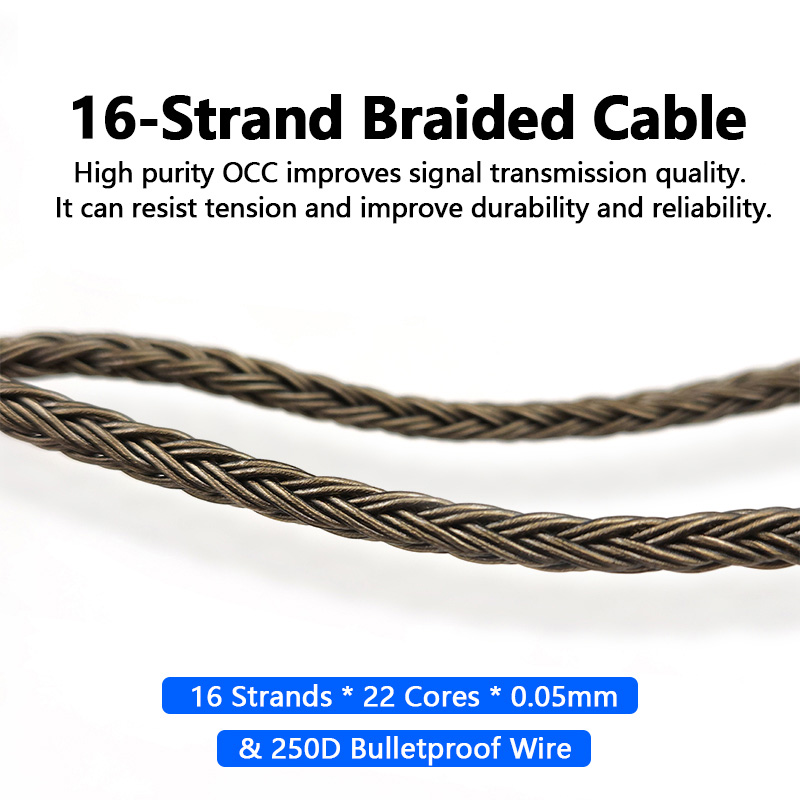 Crafted with 16 strands of high-purity, single-crystal copper wire, this cable provides superior signal transmission and maximum potential for your headphones. Additionally, the wire is coated with silver plating (99.99997% single-crystal copper plating), which further enhances clarity, smoothness, and detail in your music.