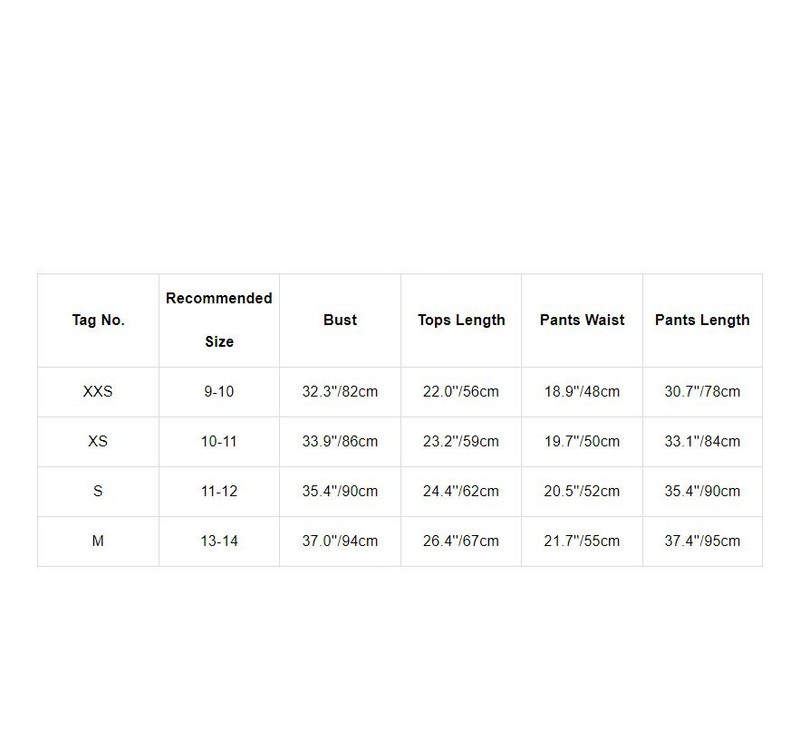 | Etikett Nr. | Empfohlene Größe | Bust | Tops Length | Pants Waist | Pants Length |