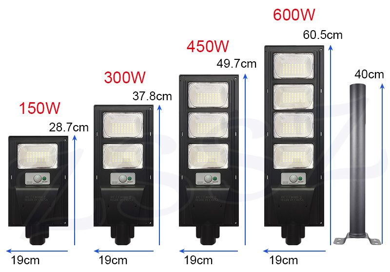 (Optional)1*(150W/300W/450W/600W)Solor Street Lamp(Lamp Shell Color: Black)+Remote Control+ Pole