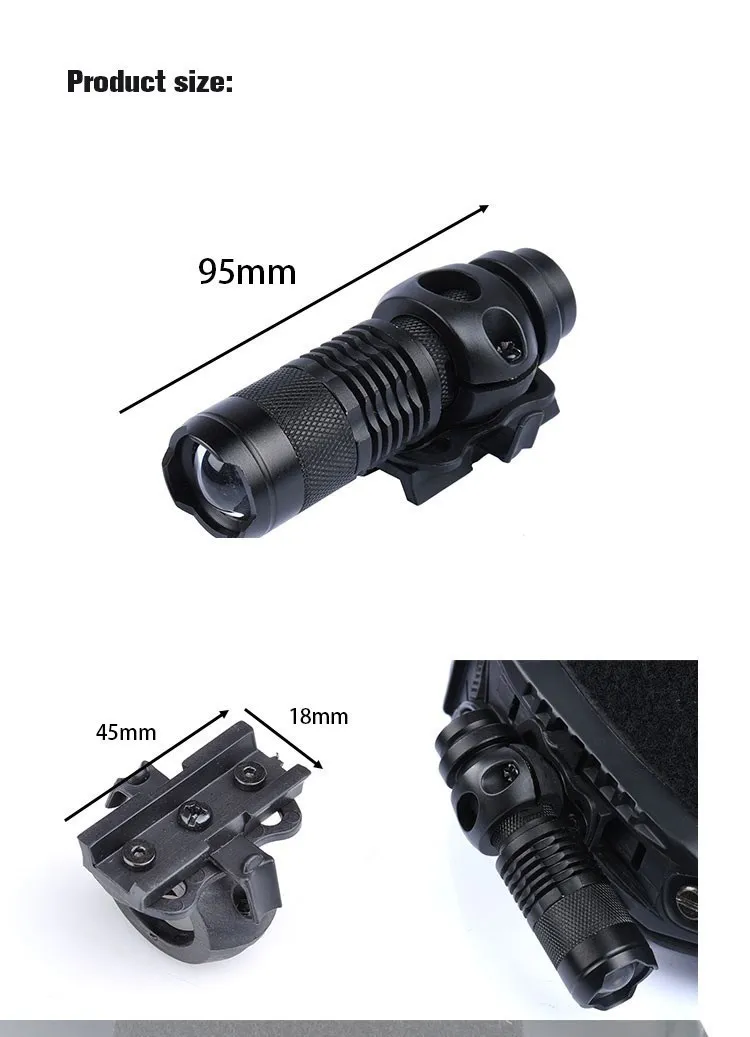 Wadsn Tactical Helmet Light Mini Led Flashlight Clamp Holder Telescopic Zoom Hunting Scout Light FAST Helmet Lamp