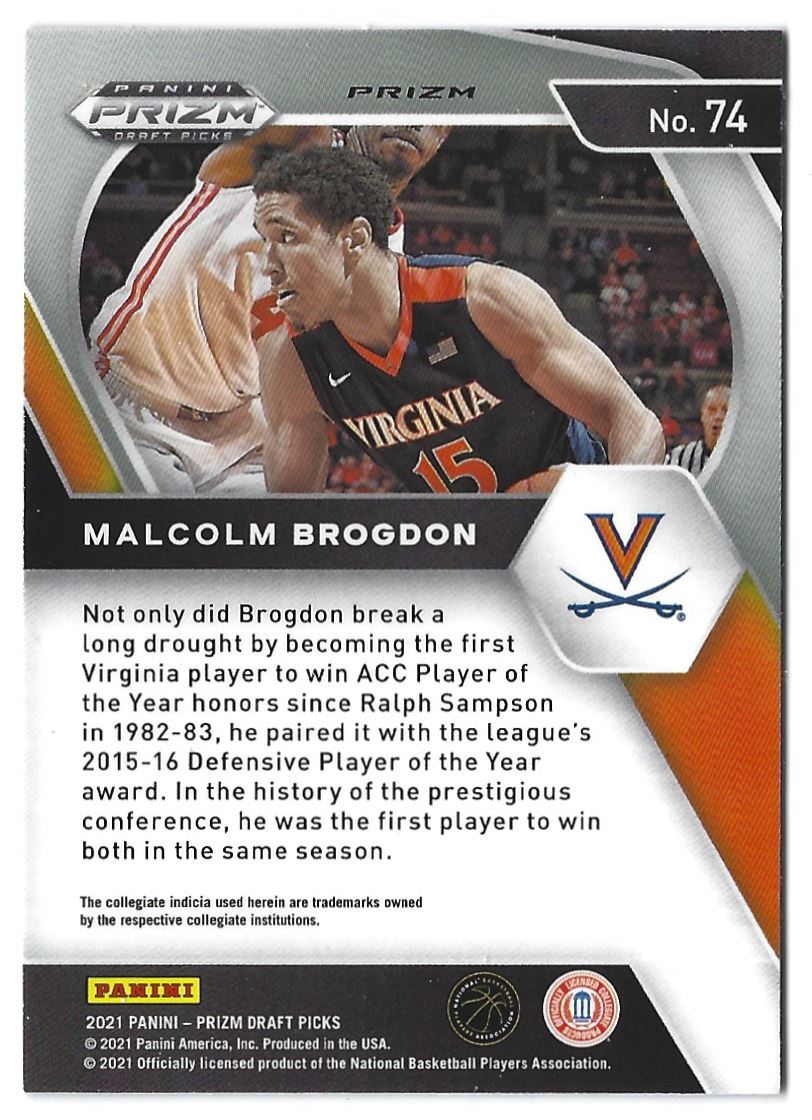 | 2021-22 Panini Prizm Draft Picks Red White Blue Prizm Malcolm Brogdon #74 | ||||||||||||||||||